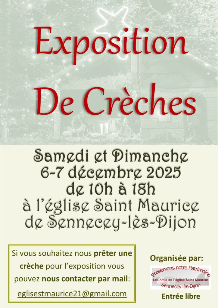 L’association « Les amis de l’église Saint Maurice » de Sennecey-lès-Dijon vous invite à une exposition de crèches les samedi 6 et dimanche 7 décembre 2025, de 10h à 18h. Cet événement est l’occasion idéale de (re)découvrir la charmante église Saint Maurice, presque millénaire et récemment restaurée, fierté du patrimoine local.