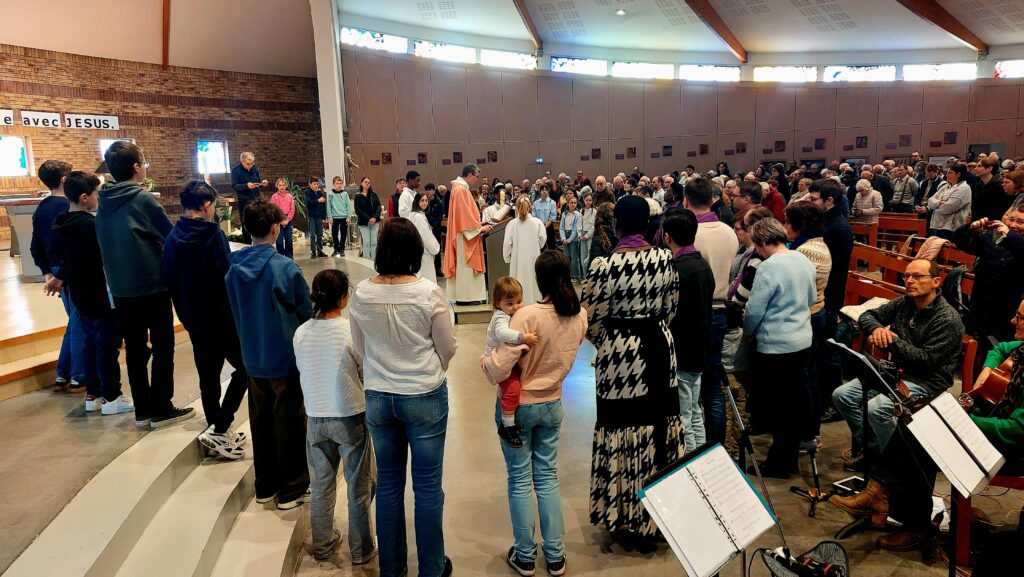 L’assemblée était nombreuse : familles, enfants, jeunes et habitués de la paroisse étaient heureux de se retrouver pour prier ensemble, célébrer et accueillir la Parole de Dieu. Les enfants ont partagé le fruit de leur réflexion et ont manifesté, à leur manière, la joie de croire et d’être ensemble.