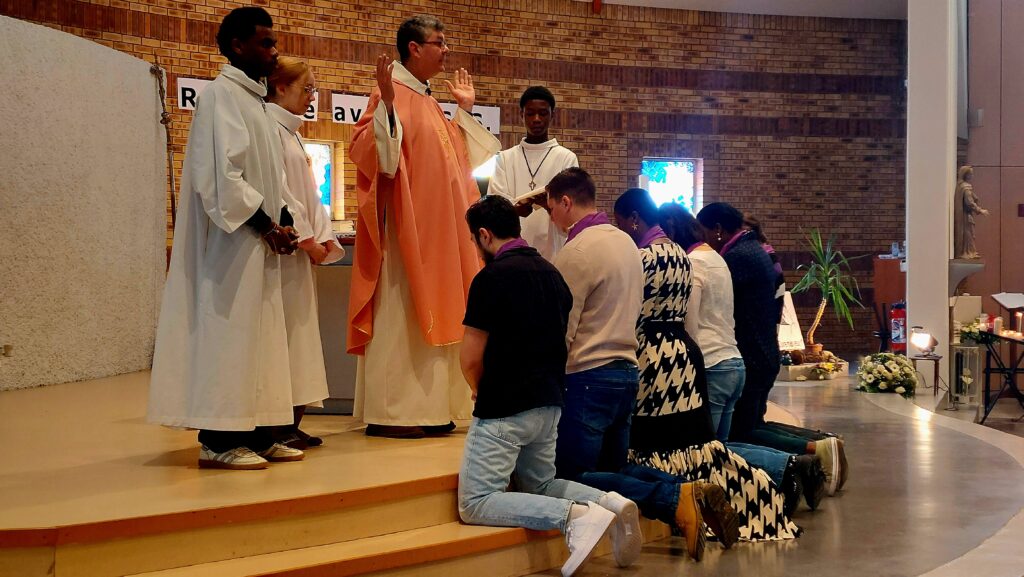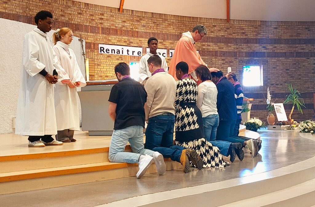 Un moment particulièrement fort a marqué cette célébration : le deuxième scrutin des catéchumènes adultes. Nos catéchumènes, qui se préparent à recevoir le baptême lors de la nuit de Pâques, ont vécu une étape essentielle de leur chemin de foi. Les jeunes présents ont ainsi été témoins de ce rite très beau et très signifiant, où l’Église accompagne ceux qui ont choisi librement de rejoindre la communauté chrétienne.